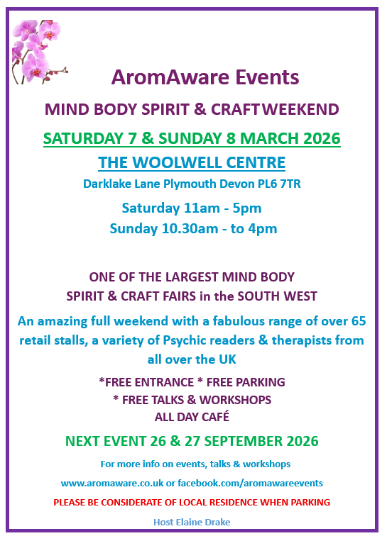 Welcome to our website. We host Mind Body Spirit & Craft weekend events three times a year in Woolwell Community Centre, Darklake Lane, Woolwell, Plymouth Devon PL6 7TR
